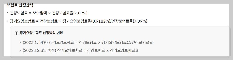 건강보험료 = 보수월액 × 7.09% ÷ 2 (본인 부담)
