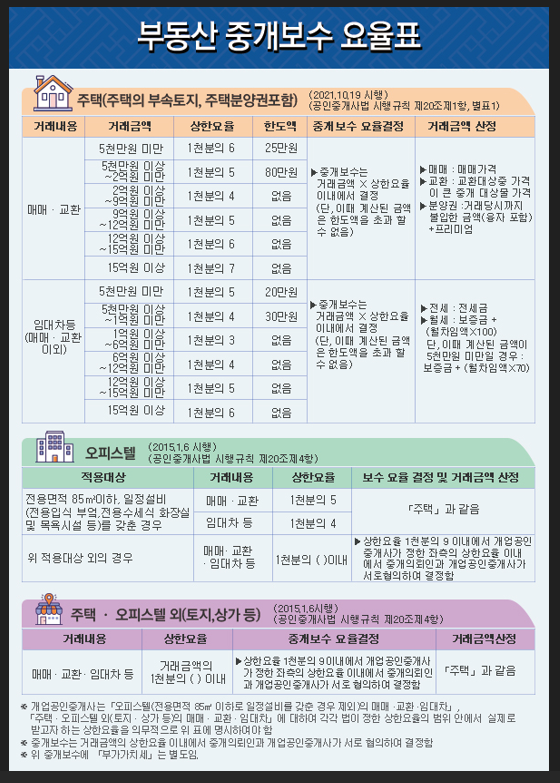 2021년 10월 공인중개사법 시행규칙 개정 이후, 중개 수수료 상한 요율이 조정되어